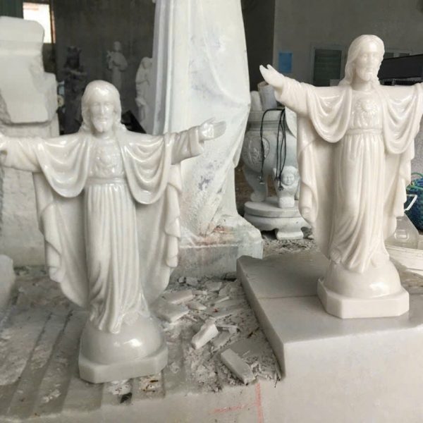 Điểm làm nên sự đặc biệt của những bức tượng này chính là quá trình chế tác công phu tại xưởng điêu khắc tượng Công Giáo bằng đá Văn Vĩnh – nơi hội tụ những nghệ nhân gắn bó cả đời với nghề. Với đôi bàn tay tài hoa và tâm hồn đầy kính ngưỡng, họ đã khéo léo thổi hồn vào từng khối đá tưởng chừng vô tri, biến nó thành một tác phẩm sống động, đầy sức gợi. Từ khâu chọn lựa những khối đá chất lượng nhất, lên ý tưởng phác thảo ban đầu, cho đến khắc chạm tỉ mỉ từng nếp áo, từng ánh mắt, từng cử chỉ, tất cả đều được thực hiện với sự tận tâm và chuẩn xác tuyệt đối. Nhờ đó, mỗi bức tượng không chỉ mang vẻ đẹp uy nghi, cao cả, mà còn lan tỏa sự nhân từ, hiền hậu – đúng với hình ảnh của Đấng Cứu Thế.
