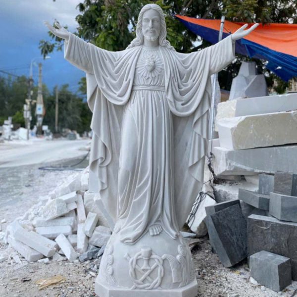 Điểm nhấn đặc biệt của bức tượng chính là quá trình chế tác công phu tại xưởng điêu khắc tượng Công Giáo bằng đá Văn Vĩnh. Nơi đây, những nghệ nhân không chỉ dùng đôi bàn tay khéo léo mà còn dồn cả tâm huyết và lòng tôn kính vào từng đường nét. Từ khâu chọn lựa khối đá hoàn hảo, phác thảo dáng hình, cho đến chạm khắc từng chi tiết nhỏ nhất như nếp áo, ngón tay – tất cả đều được thực hiện với sự tỉ mỉ, chuẩn xác và đầy cảm xúc. Nhờ vậy, hình ảnh Chúa Kitô Vua hiện lên vừa uy nghiêm, đầy thần lực, vừa bao dung, nhân từ, lan tỏa ánh sáng của niềm tin và tình yêu thương.