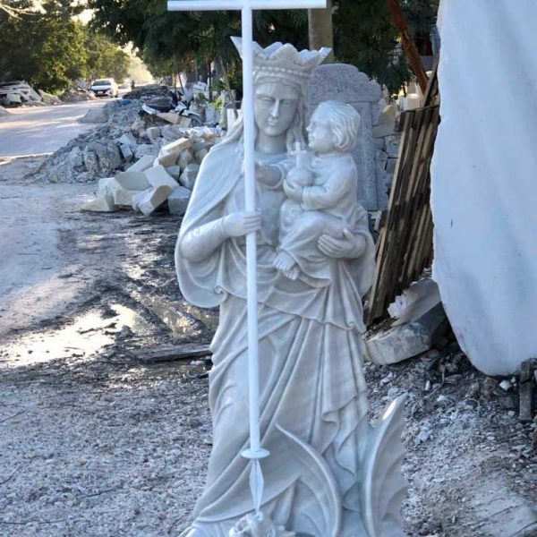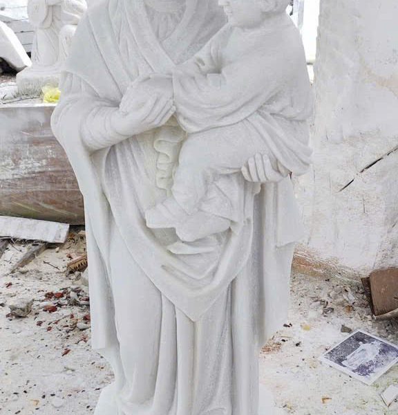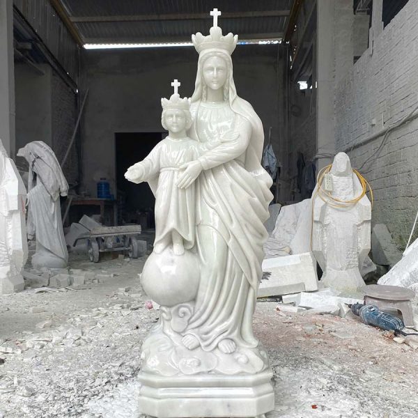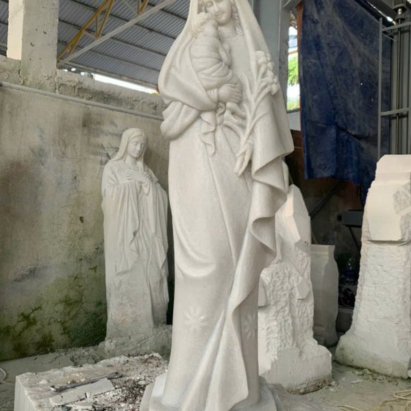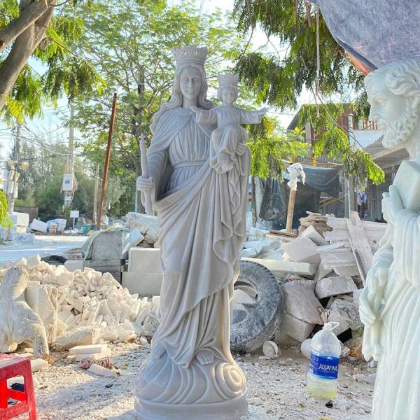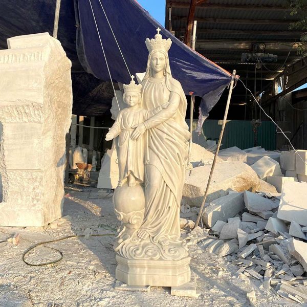 Tượng Đức Mẹ Maria và Chúa bằng đá cẩm thạch được thực hiện bởi đội ngũ nghệ nhân lâu năm tại xưởng điêu khắc tượng Công Giáo bằng đá Văn Vĩnh, nổi tiếng tại miền Trung.