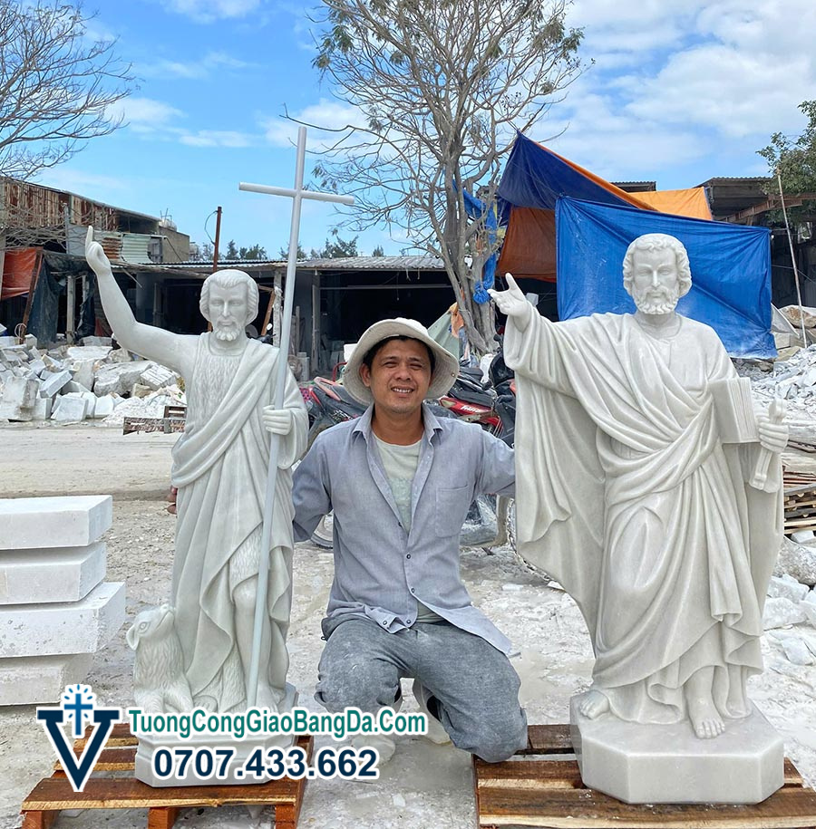 - Điêu khắc từng đường nét tinh xảo Tượng Các Thánh Công Giáo bằng đá tự nhiên