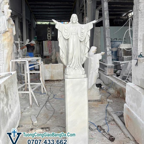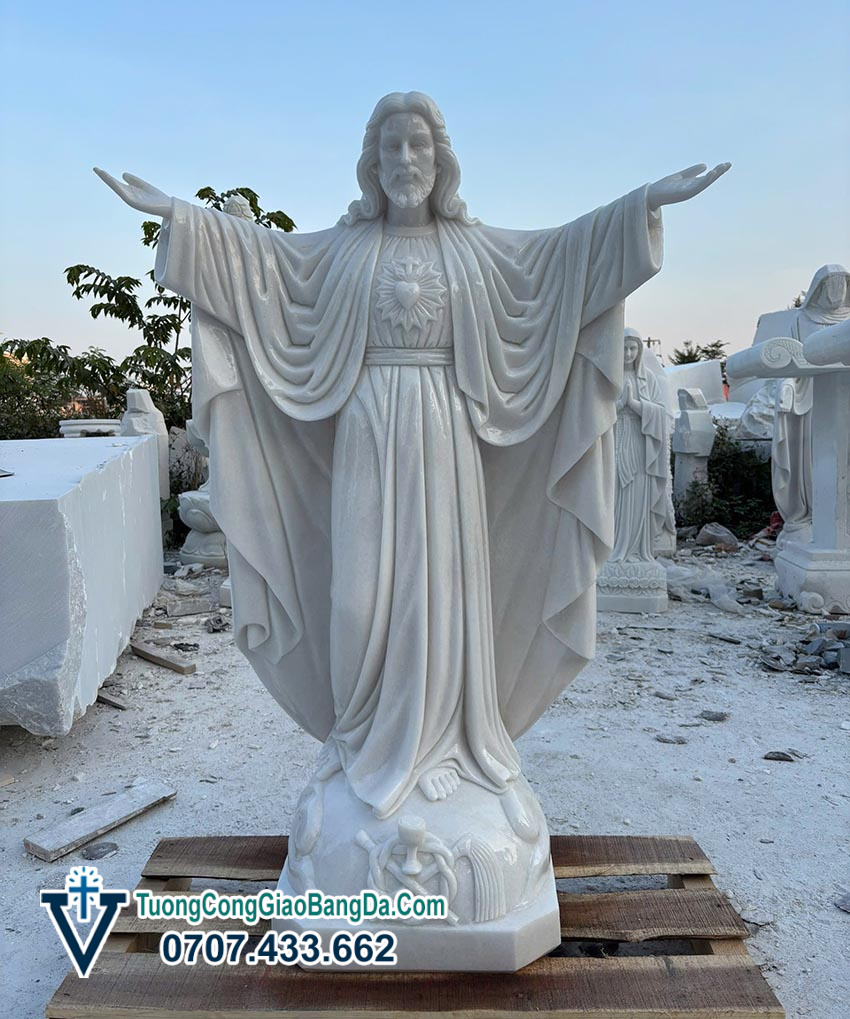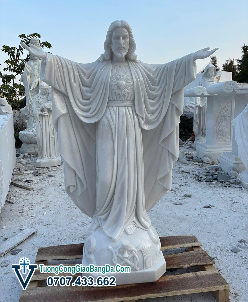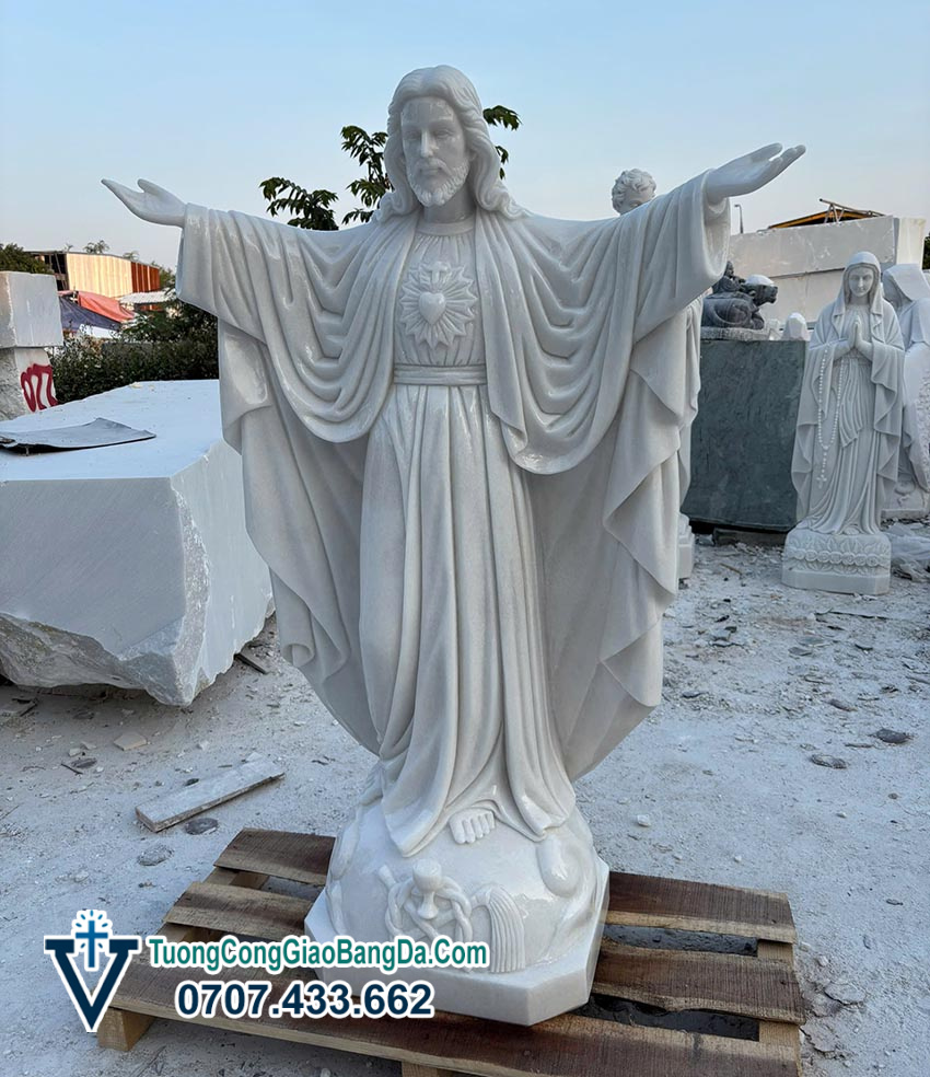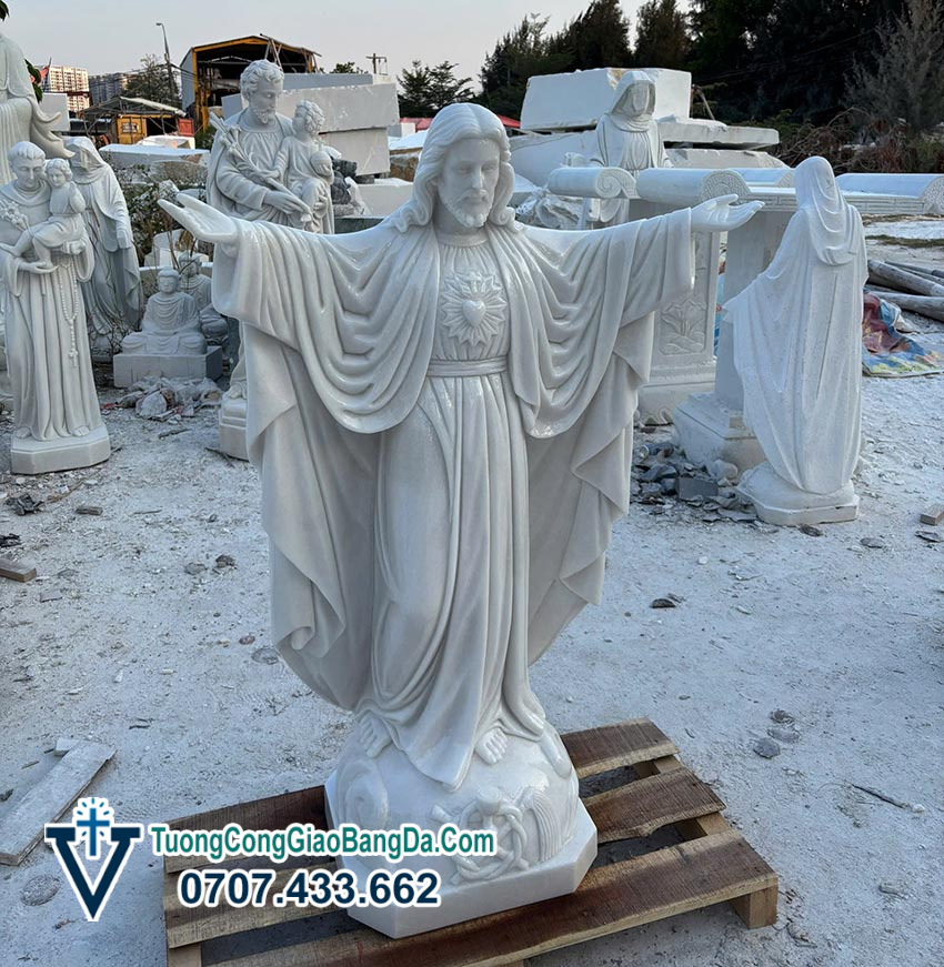 Để tham khảo giá bán tượng Chúa Giang Tay bằng đá trắng tự nhiên nguyên khối chuẩn xác nhất, các bạn có thể gọi hotline Văn Vĩnh: 0707.433.662 để được báo giá ngay tại xưởng điêu khắc tượng Công Giáo bằng đá Văn Vĩnh.