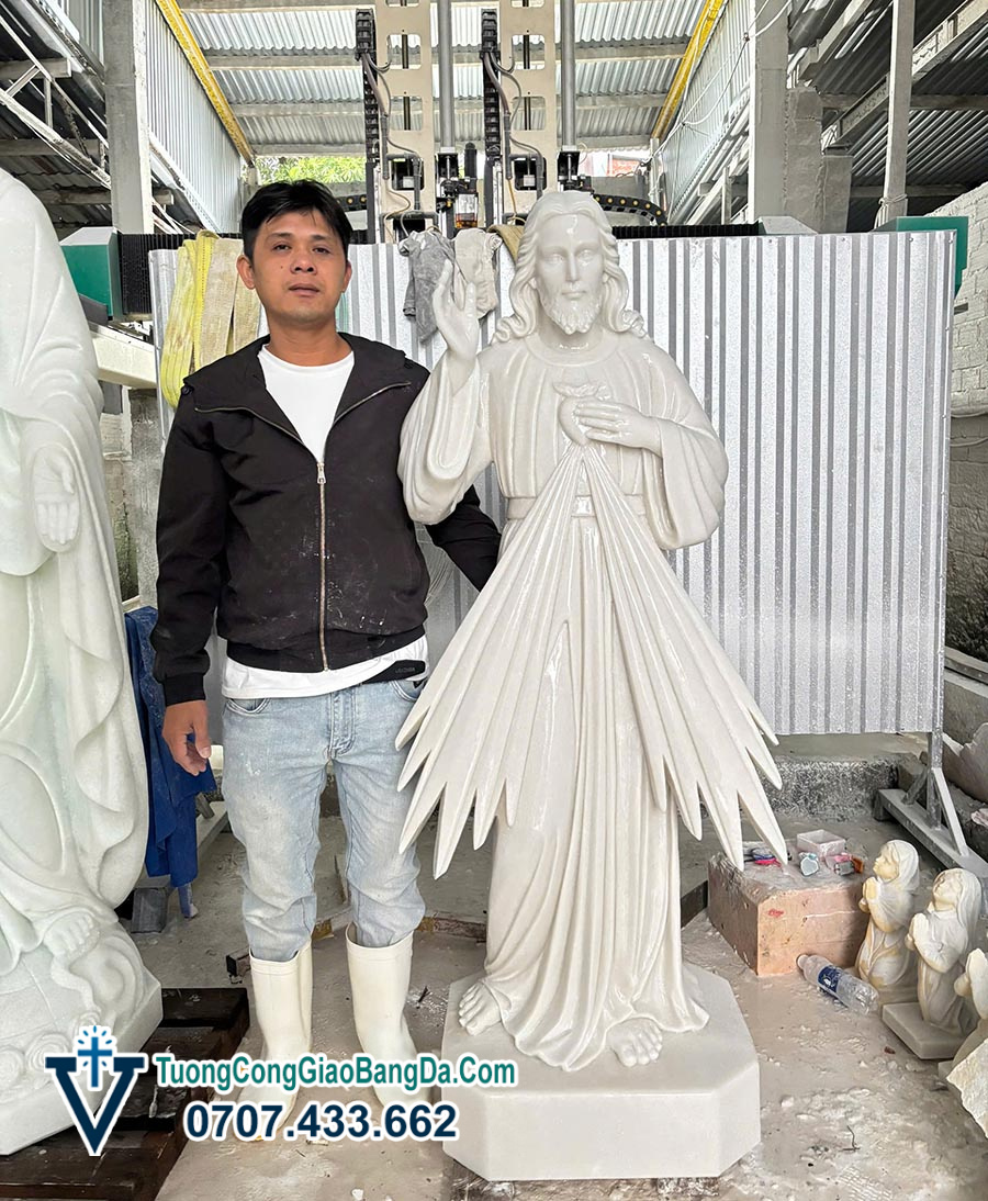 Tượng Chúa Giesu bằng đá tự nhiên là dòng sản phẩm chủ đạo và mang giá trị thiêng liêng đặc biệt tại Xưởng Điêu Khắc Tượng Công Giáo bằng đá Văn Vĩnh. Qua nhiều mẫu tượng khác nhau, các loại đá khác nhau nhưng mỗi tác phẩm đều thể hiện rõ thần thái uy nghi, lòng xót thương và tình yêu cứu độ của Thiên Chúa.