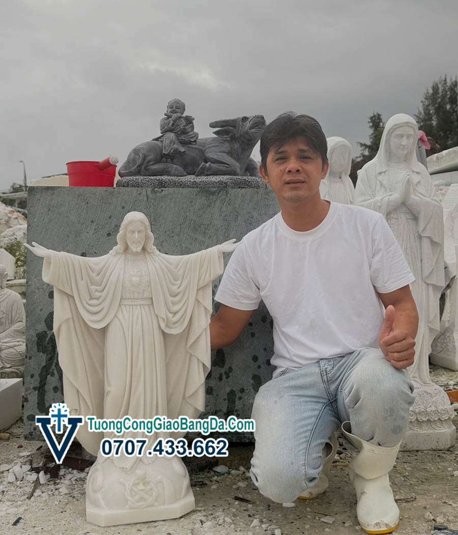 100% được điêu khắc thủ công dưới bàn tay của những thợ lành nghề của xưởng Điêu Khắc Tượng Công Giáo Bằng Đá Văn Vĩnh