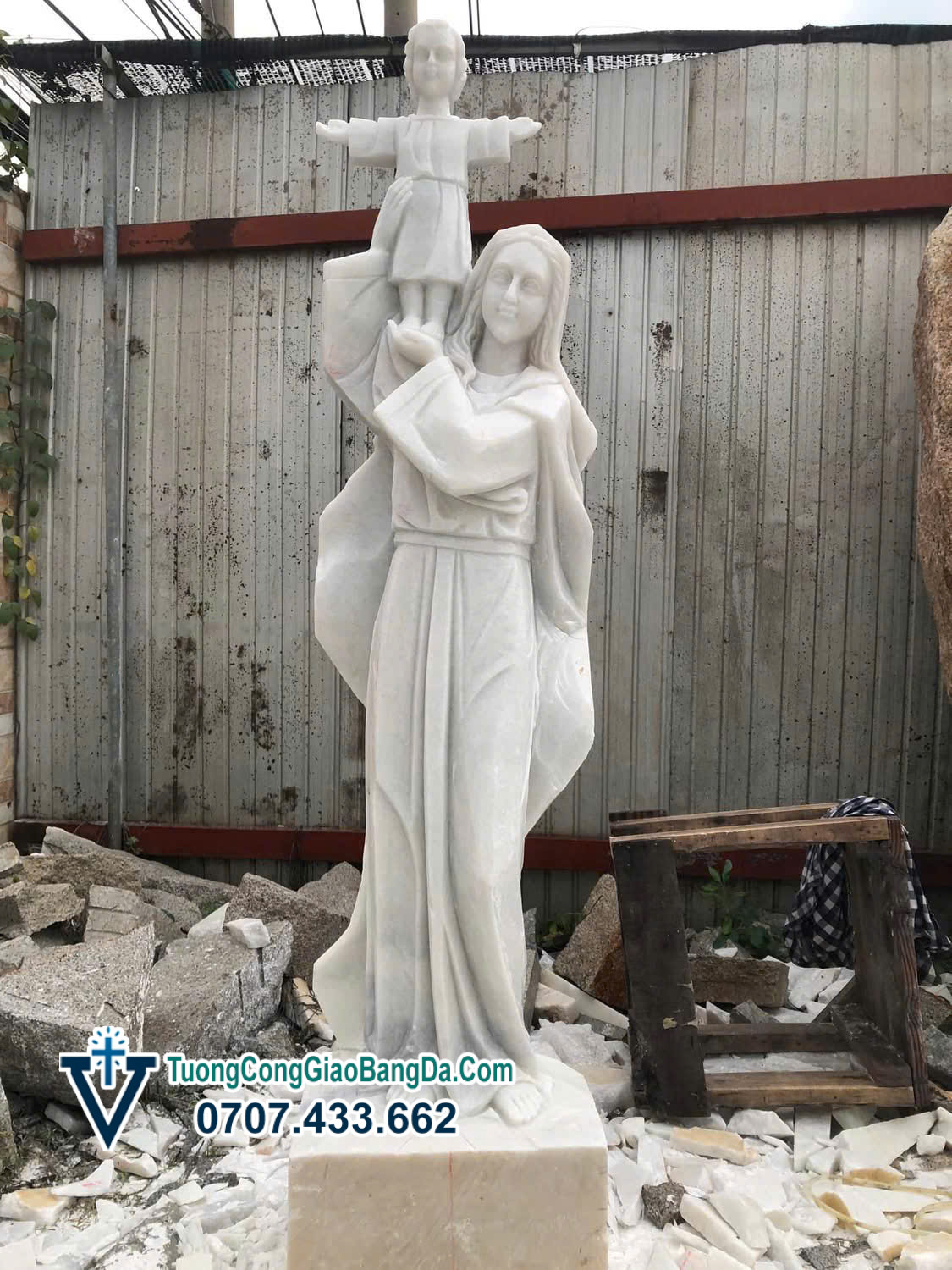 Giá bán và địa chỉ bán tượng đá Đức Mẹ Bãi Dâu bằng đá trắng tự nhiên tại Làng Đá Non Nước Đà Nẵng – Cơ Sở Điêu Khắc Tượng Công Giáo Bằng Đá Văn Vĩnh