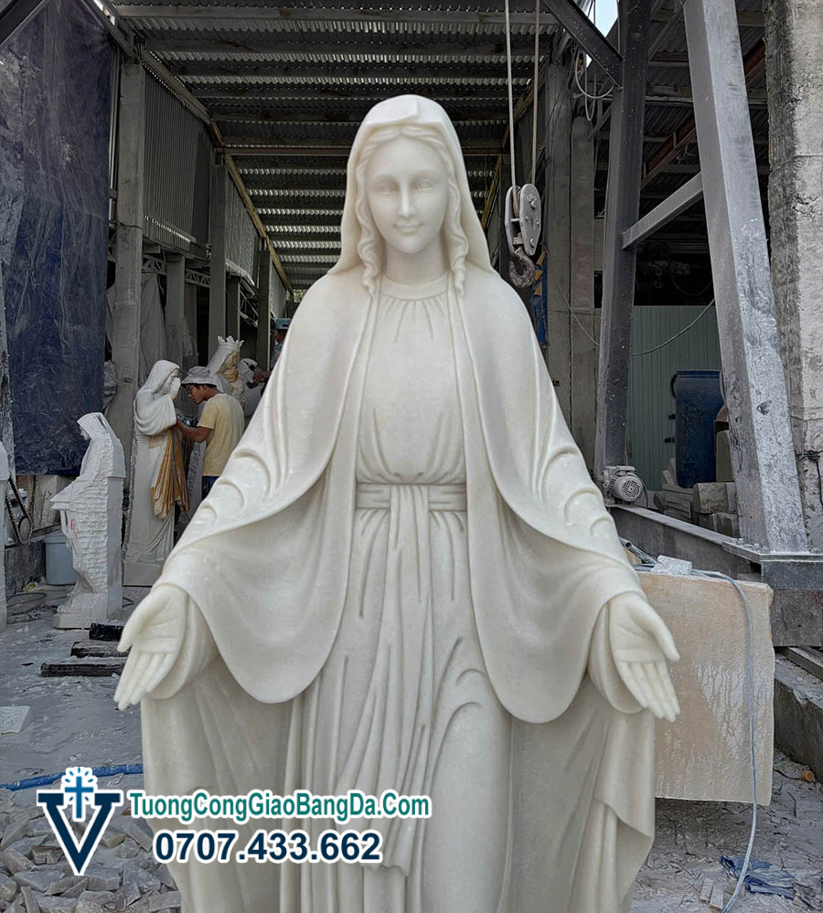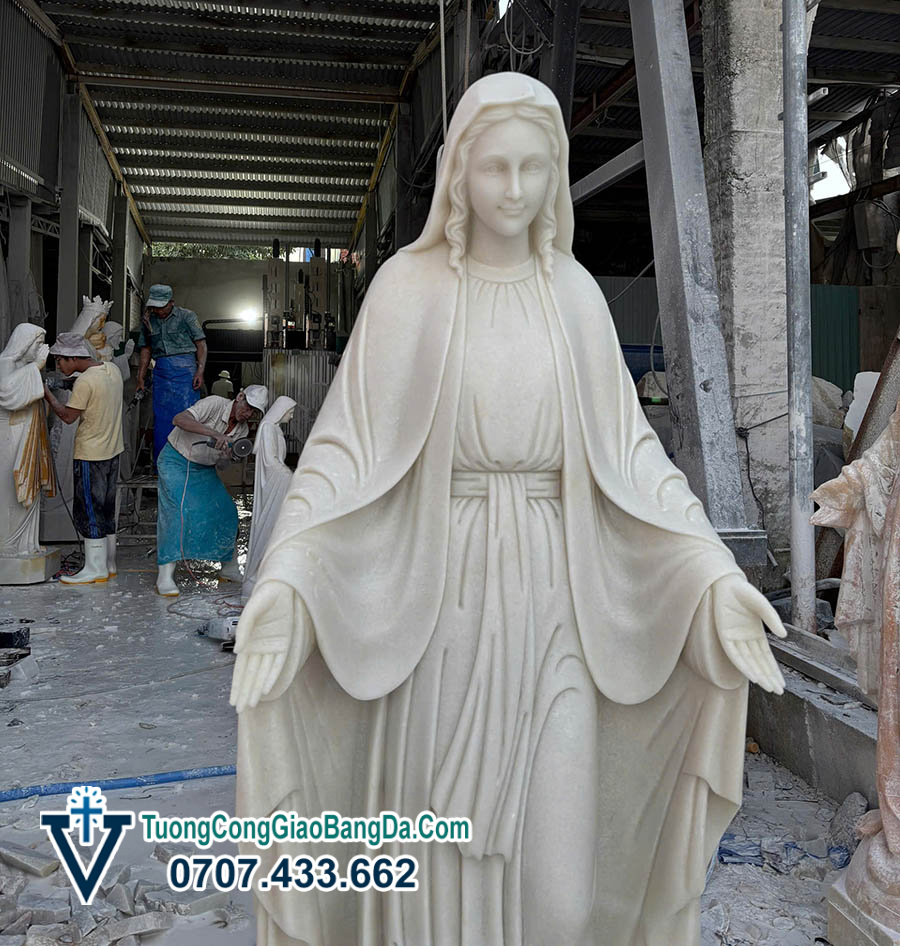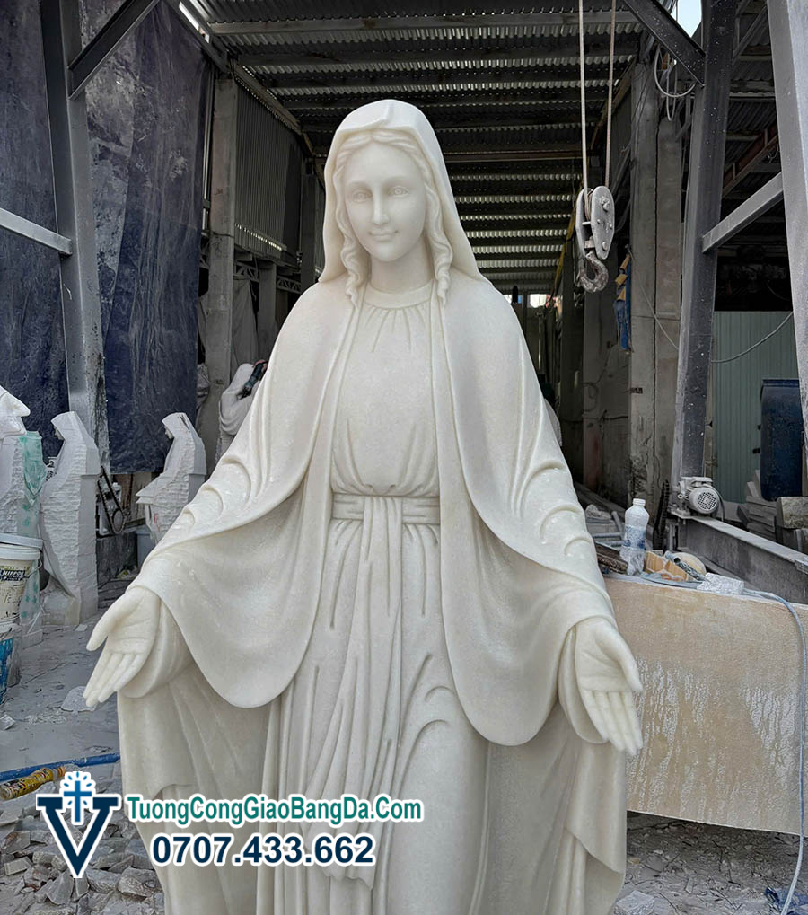 Tượng Đức Mẹ Ban Ơn bằng đá cẩm thạch tự nhiên, cao 1,7 mét, được chế tác thủ công tại Xưởng điêu khắc tượng Công Giáo bằng đá Văn Vĩnh, là một tác phẩm điêu khắc mang giá trị cao cả về đức tin, nghệ thuật và độ bền vững theo thời gian. Đây là mẫu tượng được nhiều giáo xứ, nhà thờ và gia đình Công Giáo lựa chọn để tôn kính và đặt nơi trang nghiêm.