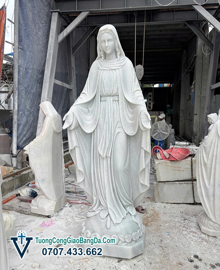 Tượng đá Đức Mẹ Ban Ơn bằng đá trắng cao 2,5 mét là một sản phẩm mang nhiều ý nghĩa tốt đẹp. Tượng đá không chỉ là vật phẩm tôn giáo mà còn là tác phẩm nghệ thuật và biểu tượng văn hóa. Chọn mua tượng đá Đức Mẹ Ban Ơn bằng đá trắng cao 2,5 mét là cách để thể hiện lòng sùng kính Đức Mẹ Maria, cầu mong bình an và may mắn cho gia đình, đồng thời tô điểm thêm cho không gian thờ tự thêm trang nghiêm và thanh tịnh.