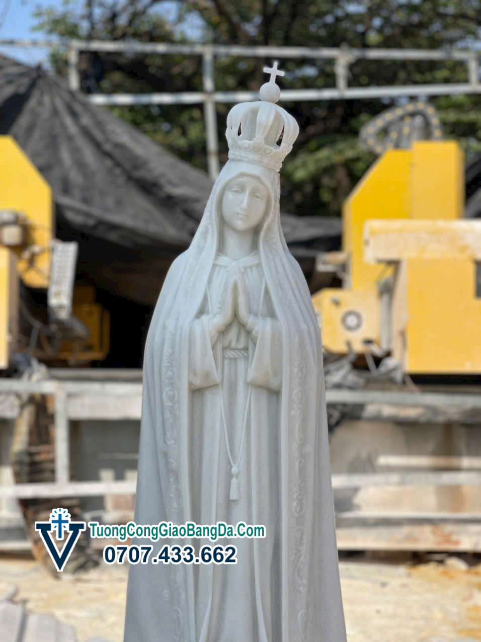 Tượng Đức Mẹ Fatima bằng đá Non Nước cao 1,5 mét là tác phẩm điêu khắc Công Giáo mang vẻ đẹp thanh thoát, hiền mẫu và đầy tính suy niệm, được chế tác thủ công tại xưởng điêu khắc tượng Công Giáo bằng đá Văn Vĩnh. Tượng tái hiện hình ảnh Đức Mẹ hiện ra tại Fatima – biểu tượng của cầu nguyện, hoán cải và bình an.