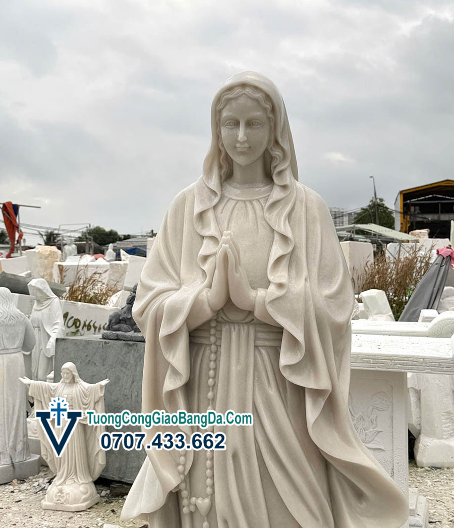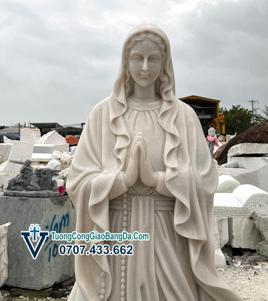 Tượng Đức Mẹ Lộ Đức bằng đá trắng tự nhiên là biểu tượng cho lòng tin và hy vọng vào một tương lai tốt đẹp hơn. Chất liệu đá trắng tự nhiên tượng trưng cho sự tinh khiết, thanh cao và vĩnh cửu, thể hiện niềm tin vào sức mạnh của Thiên Chúa và sự bảo trợ của Đức Mẹ.