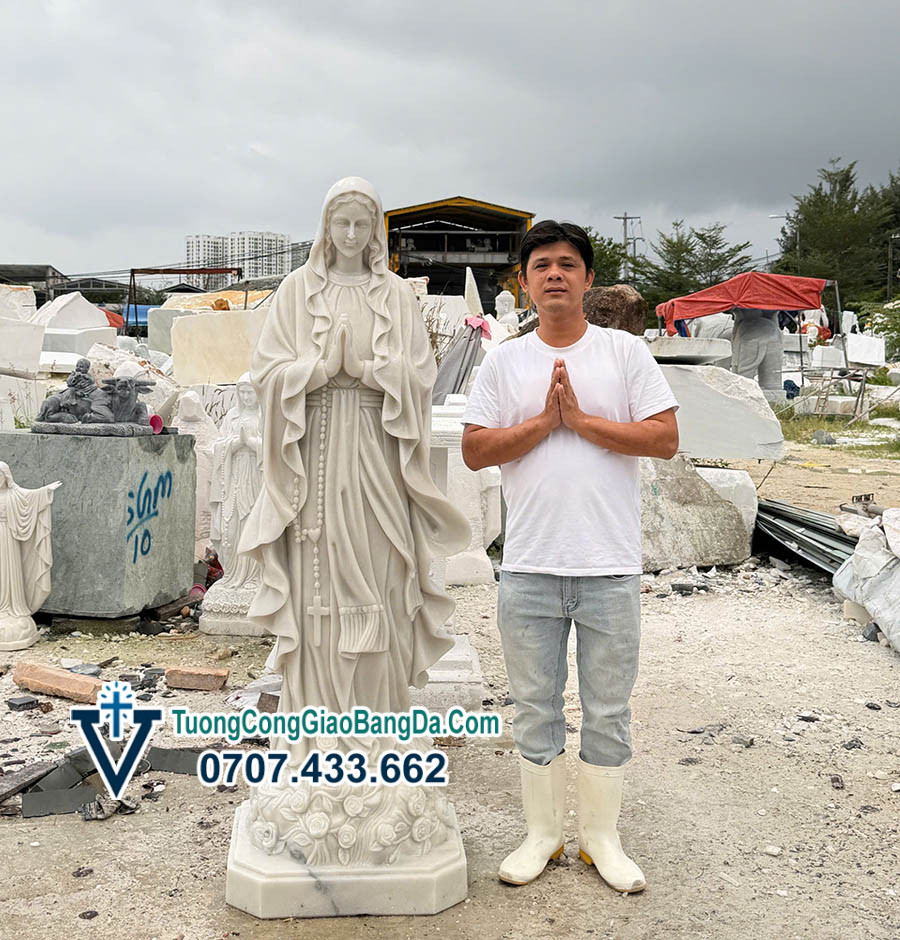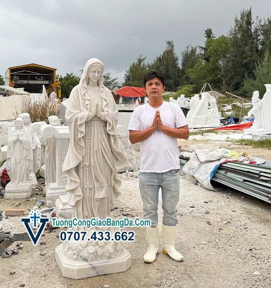 Tượng Đức Mẹ Lộ Đức cao 1,6 mét được chế tác từ đá cẩm thạch trắng tự nhiên, khai thác từ mỏ đá có độ cứng tốt, vân đá đẹp và khả năng chịu thời tiết cao. Sản phẩm được điêu khắc tại Xưởng Điêu Khắc Tượng Công Giáo Bằng Đá Văn Vĩnh, nơi chuyên thực hiện các tác phẩm tượng tôn giáo theo chuẩn mỹ thuật – thần học – tôn kính của Giáo Hội.