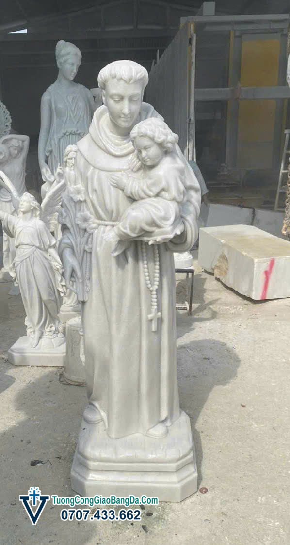 - 1 Hình ảnh Tượng Thánh Anton bằng đá cẩm thạch tại xưởng điêu khắc tượng đá Công Giáo Văn Vĩnh