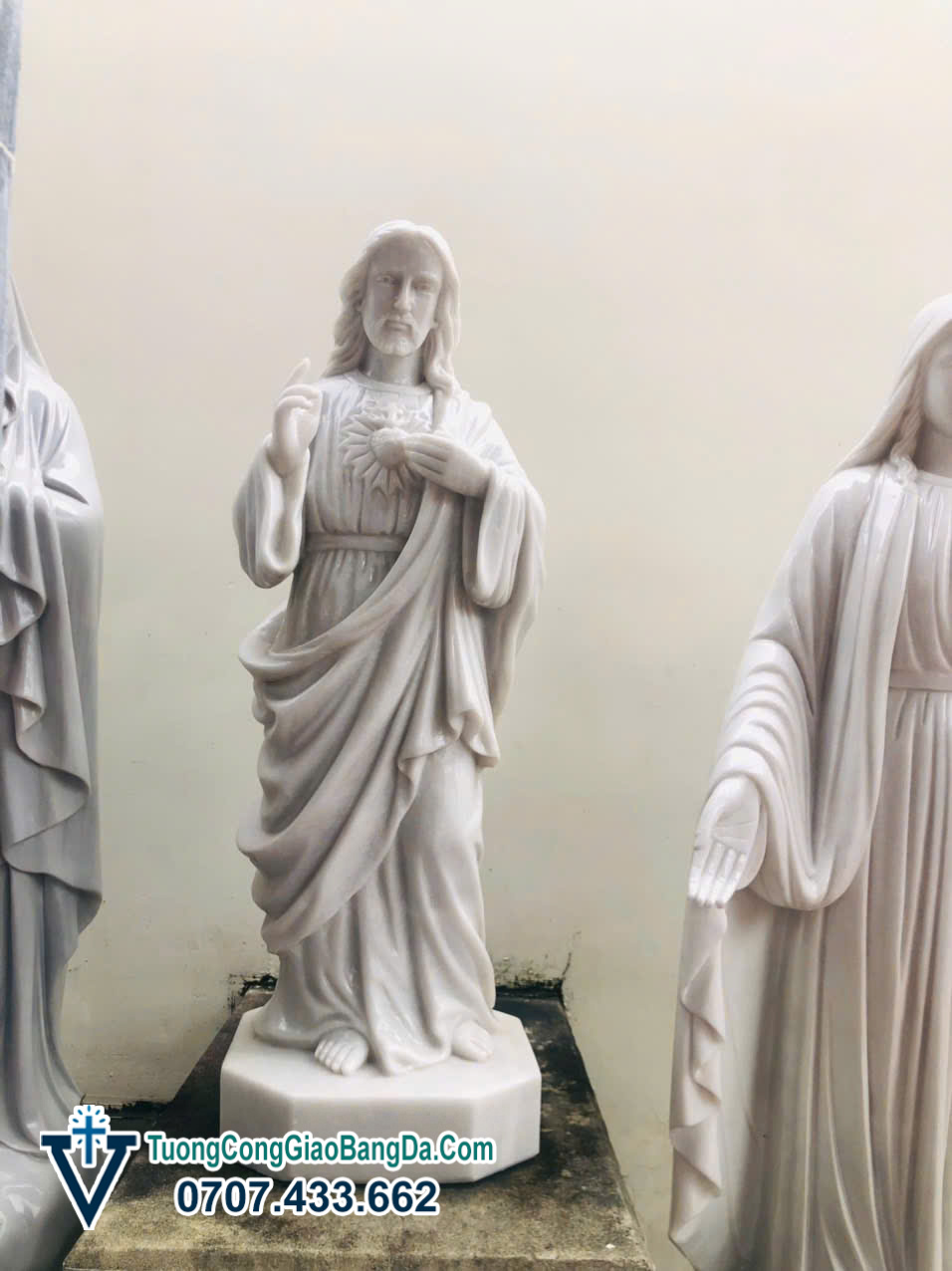 Tượng Chúa Thánh Tâm bằng đá cẩm thạch nguyên khối cao 1,6 mét (TTC10)