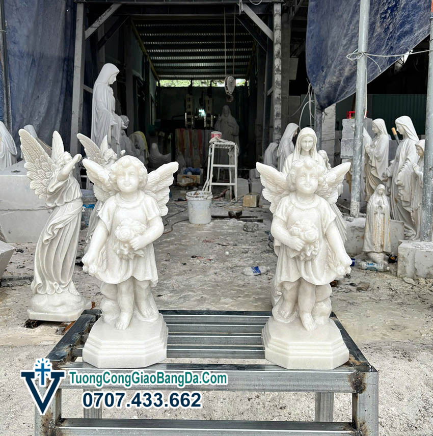 Một số hình ảnh Tượng Thiên thần tại xưởng điêu khắc tượng đá Công Giáo Văn Vĩnh