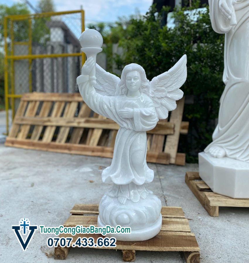 - Điêu khắc từng đường nét tinh xảo Tượng Thiên thần cầm đèn