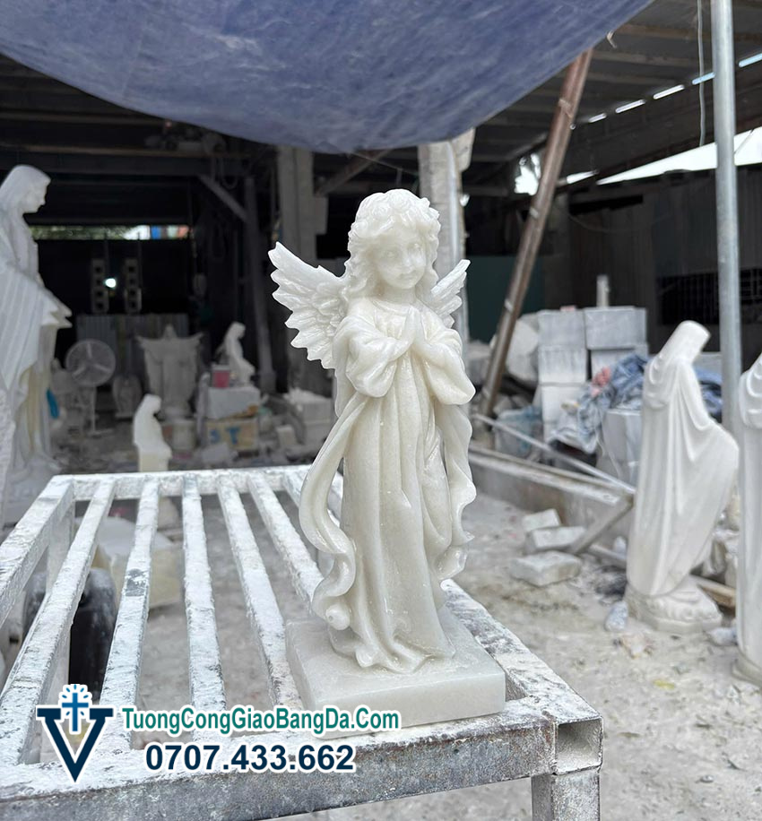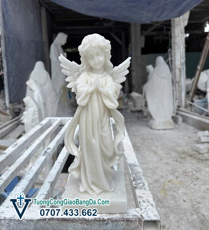 - Điêu khắc từng đường nét tinh xảo Tượng Thiên thần cầu nguyện