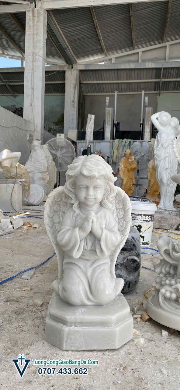 - Điêu khắc từng đường nét tinh xảo Tượng Thiên thần quỳ cầu nguyện