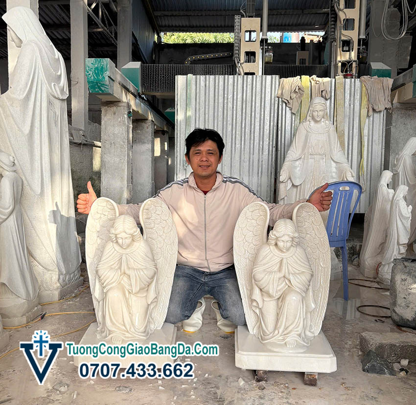 - 1 Một số hình ảnh Tượng Thiên thần quỳ gối cầu nguyện tại xưởng điêu khắc tượng đá Công Giáo Văn Vĩnh