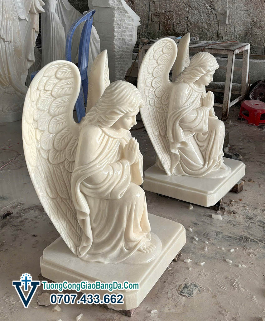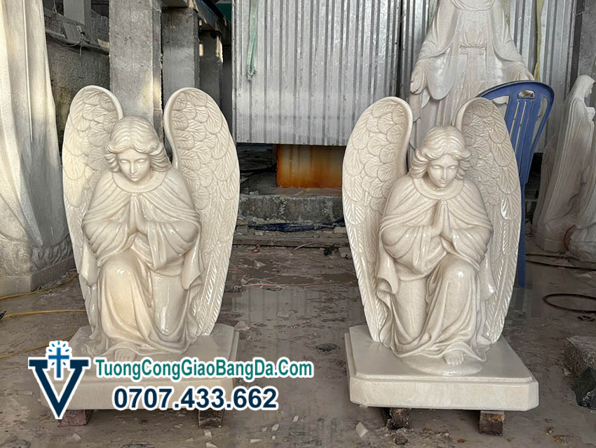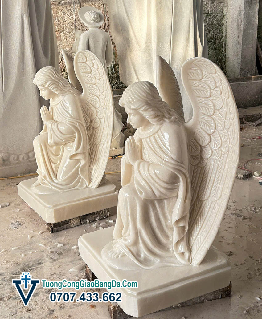 - Điêu khắc từng đường nét tinh xảo Tượng Thiên thần quỳ gối cầu nguyện