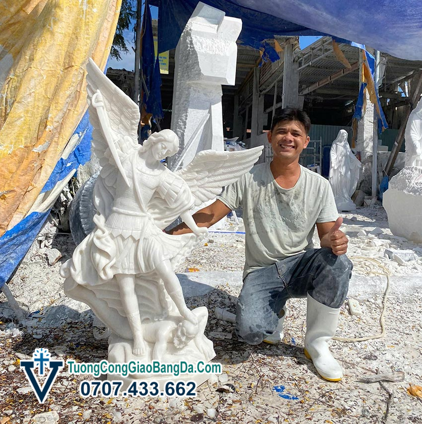 Một số hình ảnh Tượng Tổng Lãnh Thiên Thần bằng đá cẩm thạch trắng tại xưởng điêu khắc tượng đá Công Giáo Văn Vĩnh